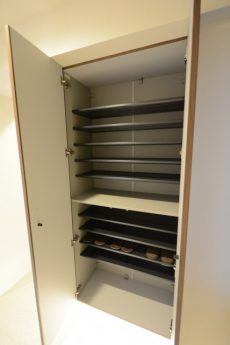 玄関は入って左側に、トール型のシューズボックスがたっぷりと設置されています。