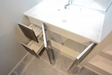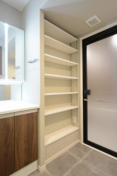 加えて、化粧台横にもリネン庫が設置されているので、収納に困ることは