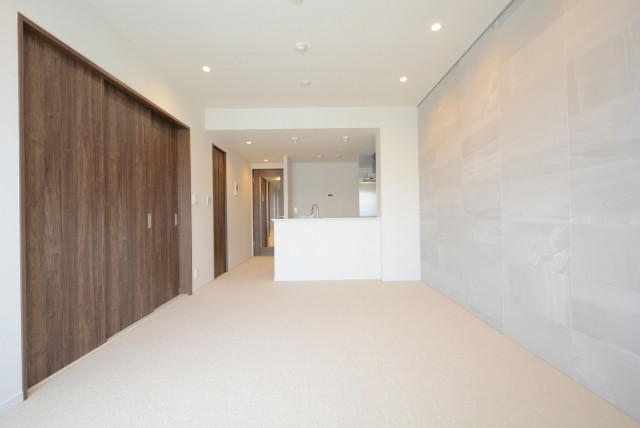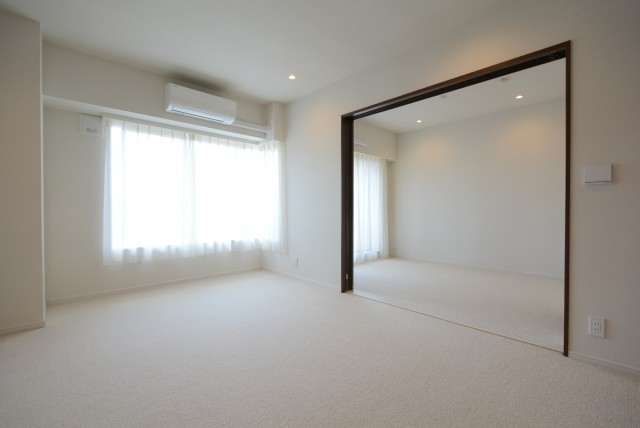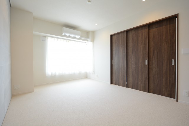 なんと床にはカーペットが敷かれていますよ!カーペットって高級感ありますよね♬ 明るい色使いに濃い目の建具がアクセントになっています。
