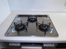 片面焼きグリルと3口コンロが付いています。