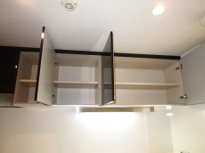 収納は調理台の下と、上部には吊戸棚がありました。