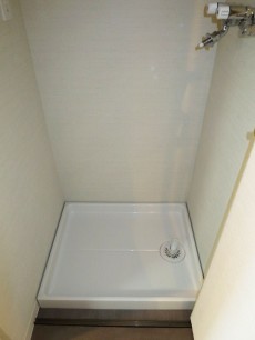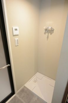 化粧台と反対側の壁面には、洗濯機置き場があります。扉付ですので、来客