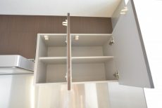上部には吊戸棚が設置されており、お気に入りの食器や場所を取りがちなキッチン