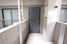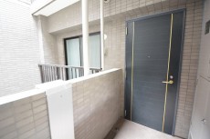 左へ曲がりと共用廊下を進むと最初の門扉が目的のお家です。