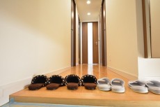 ニッチの壁紙はグレイ系でシューズボックスの中も黒系でした。
