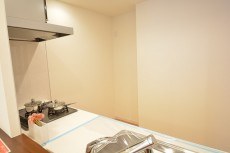 冷蔵庫置場はシステムキッチンの向側に用意されています!
