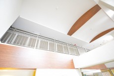 白基調でアーチ型のエントランスホールの2階はトランクルームになっています。