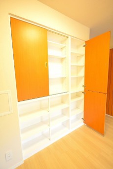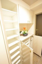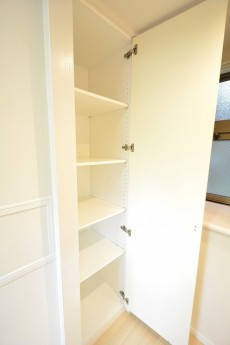 リビングとキッチンの入口に収納スペースが設置されていて大変便利!
