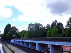先程の公園への入り口を右に向かいます。この公園はこちら側はお堀のようになっているので、公園内の遊歩道も橋のようになっていました(^o^)