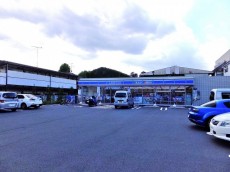 南に進み、坂を下っていくと、右側にひろーい駐車場のローソンがあります。