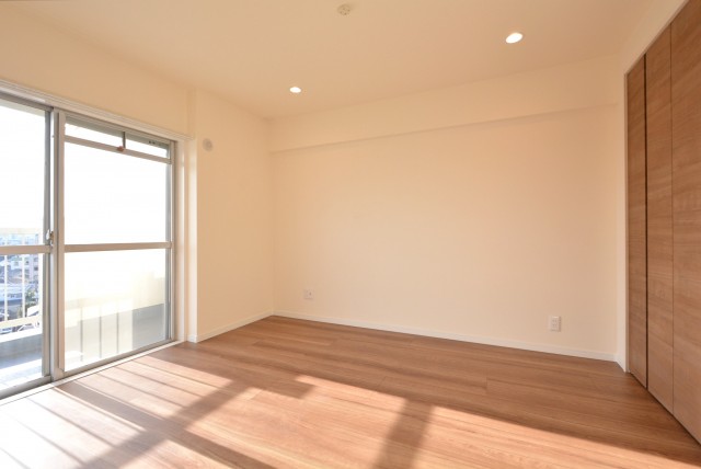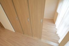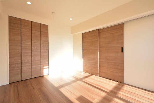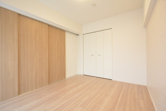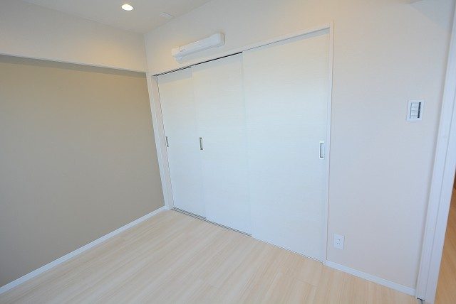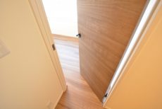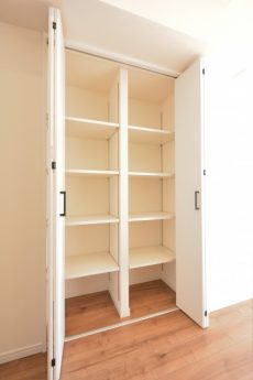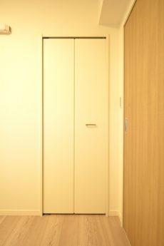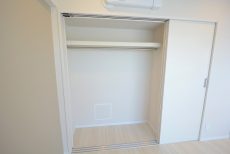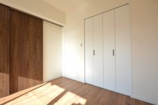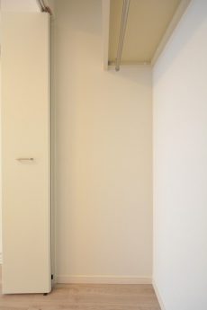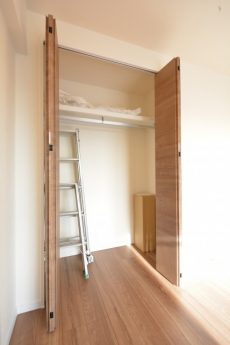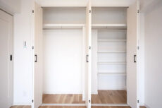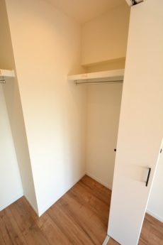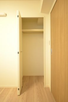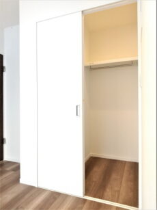 LDKと同じ北東向きバルコニーに面したお部屋です。40㎡台だと洋室を小さくして2LDKにすることも多いのですが、個人的には洋室は6帖くらいあると嬉しいですね。収納はハンガーパイプだけでなく棚も付いたクローゼット。フルオープンになって使いやすそうです。