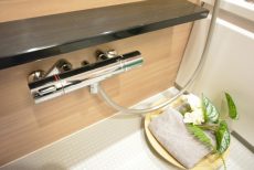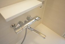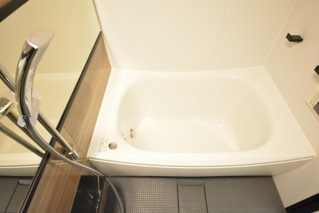 浴室は白を基調に優しい色合いの落ち着いた雰囲気。
