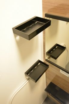 洗面台の脇のスペースには、洗顔やお化粧中にちょ~っとボトルを置いておけるだけの