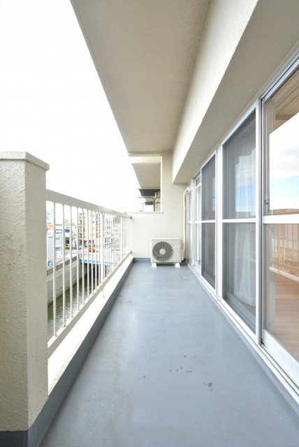 広さ8.04㎡のゆったりサイズのバルコニーです。奥行きがあるので数字よりさらに広く感じるかもしれませんね。外の眺めはご覧の通り!開放的な眺めが広がっています♬
