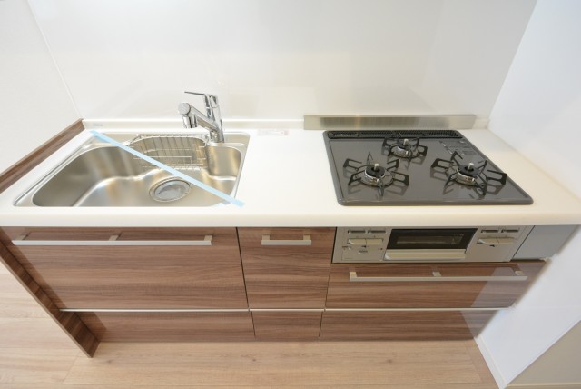 グリル付きの三口ガスコンロです (´∀`*)~♪