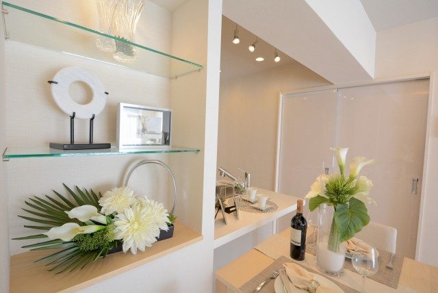 飾り棚の壁面部分は調湿・消臭機能のあるエコカラットが使用されています。