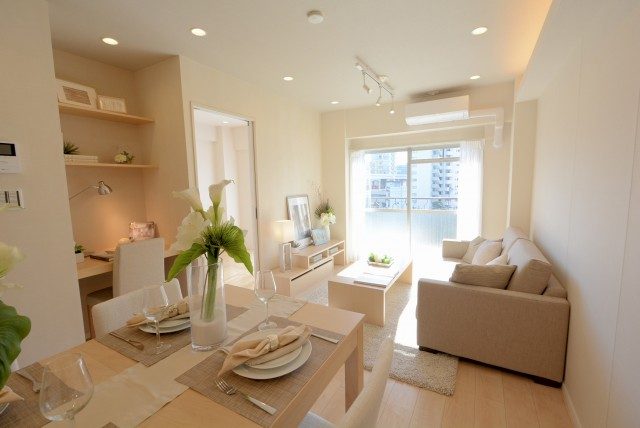 LDKは約10.1帖。お部屋に合わせて置いてある家具もついてきます。