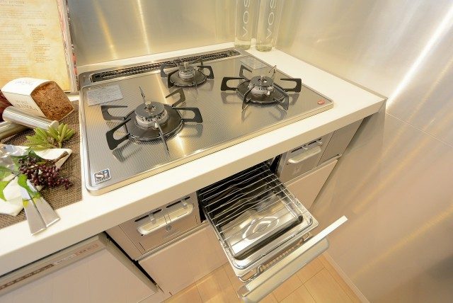 グリル付きの三口ガスコンロです (´∀`*)~♪