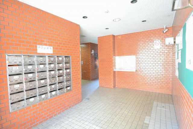 1階の共用部の中もエントランスまわりと同じレンガ調のタイル貼りになっています。