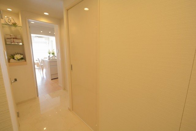ドアのわきにはニッチが!小物や写真盾などで飾って、廊下を彩りたいところ☆