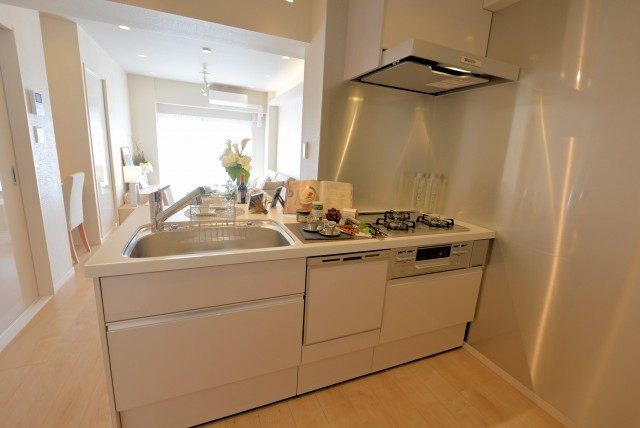 キッチンは3口コンロ、浄水機能付き水栓、食洗機つきとスペック◎!