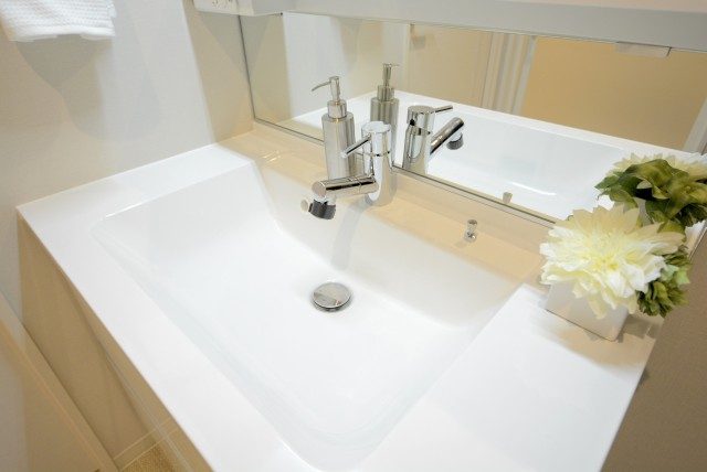 シンク脇にスペースがあるのは、使用中の化粧品のボトルなどを一時置きしたりできて、あると便利ですよね~♪