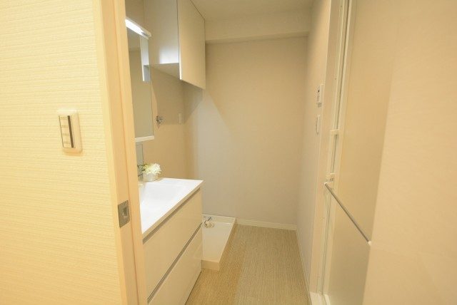 洗面化粧台、洗濯機置場、バスルームがまとまっています。