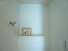 外出前の身だしなみもチェックバッチリですね!右側にありニッチには絵を飾ったり写真を飾ったりとインテリアを楽しめそうです♪