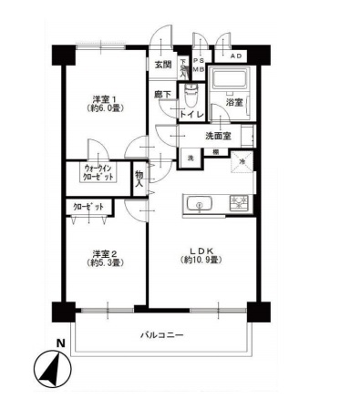 南東向きで日当たり・頂部良好な2LDK 53.55㎡のお部屋です。