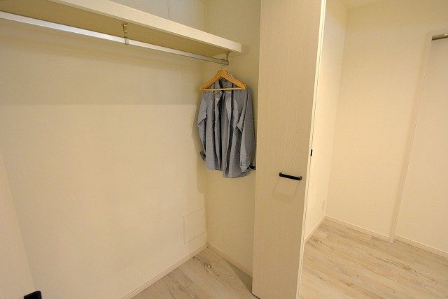 奥行のある大きなクローゼットには棚も設置されています。