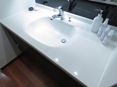 洗面台はスペースが広いのでハブラシや化粧水など置けますよ♪