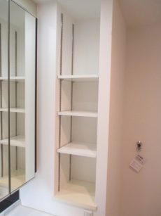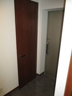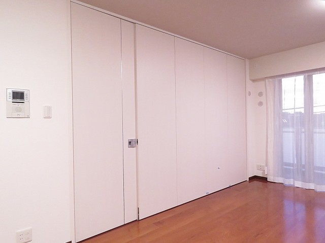 扉は壁の色と一緒で分かりにくいですが、銀の取っ手がついているところが扉です。