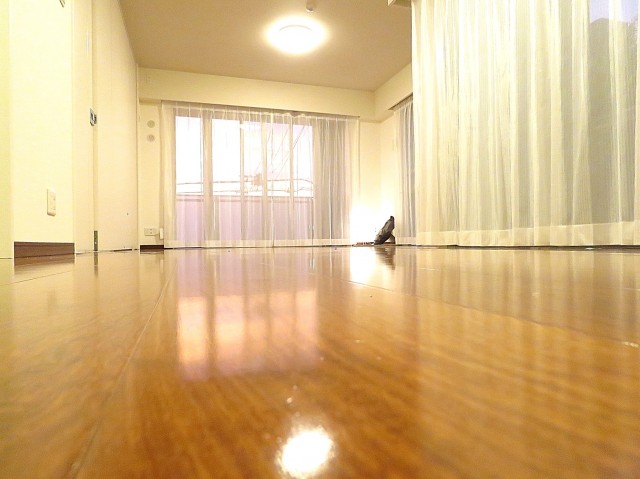お隣のマンションが目の前に建っているのでカーテンは閉めておいた方がよさそうです。