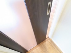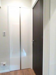 左側の扉は洋室、正面の採光部のある扉の奥はLDKです。