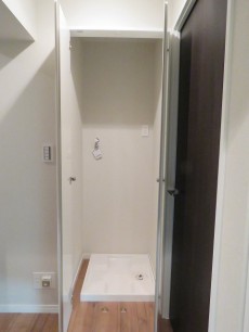 洗濯機置場。使わない時は扉をしめておけば生活感も隠しておけます。