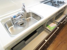 キッチンは3口コンロ、浄水機能付き水栓、上下に収納たっぷりと設備充実。