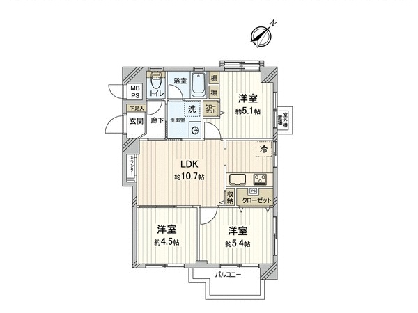 56.74㎡ 3LDK 今年8月にリノベーション工事を終えたばかりのとてもキレイなお部屋です。