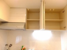 上部に棚があるので、こちらにストックや掃除用具などを収納してください。