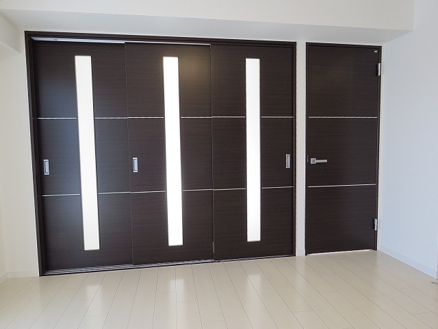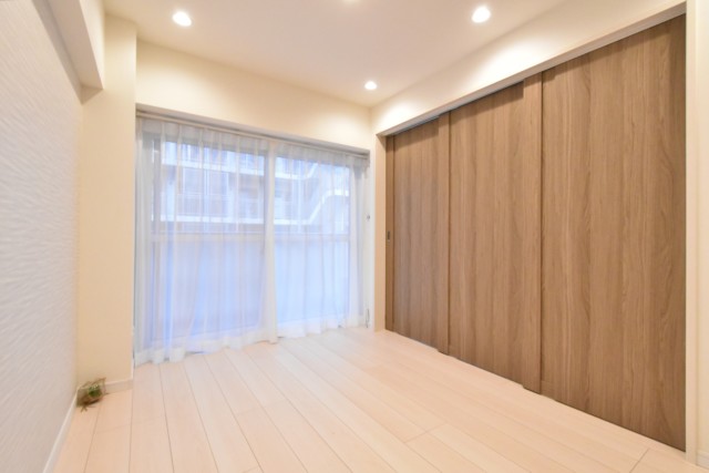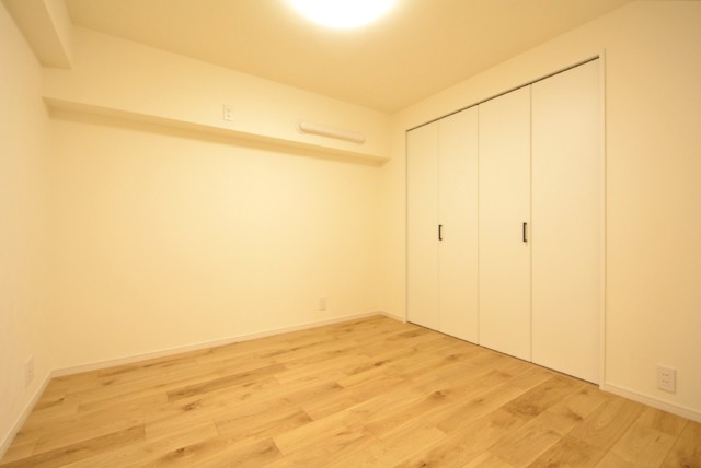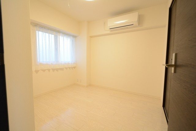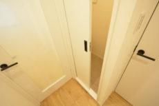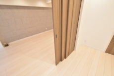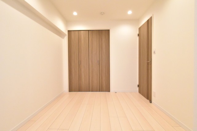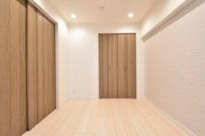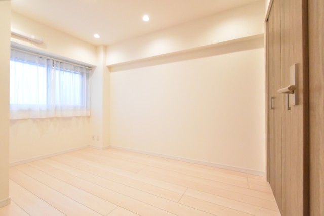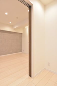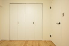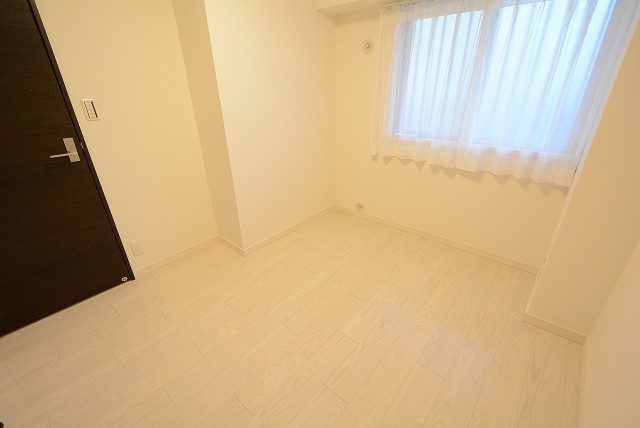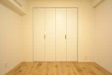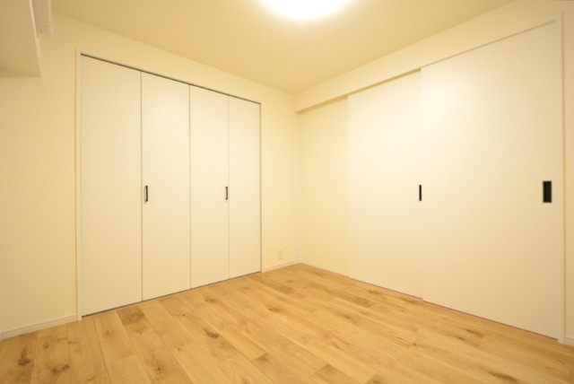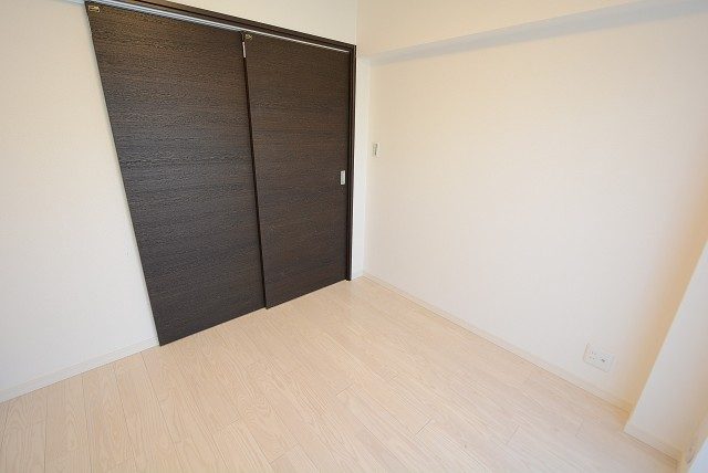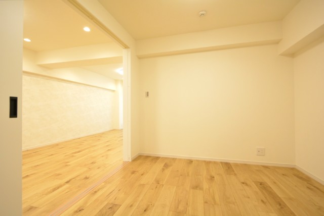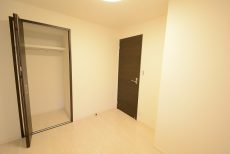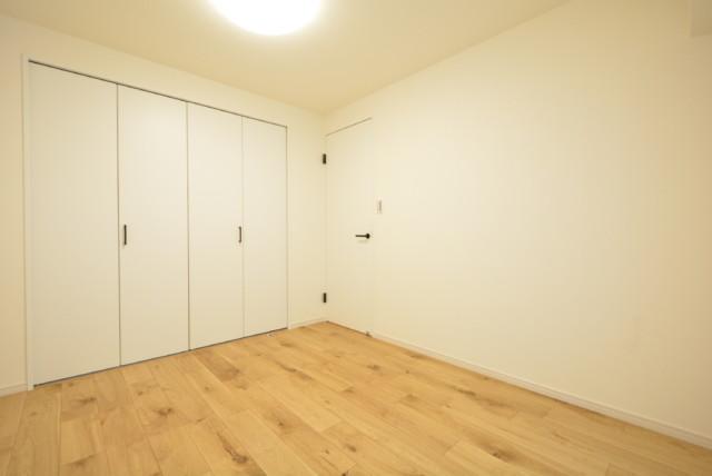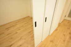 こちらは約4帖の洋室。窓の無いお部屋です。多少小さめですが、引き戸使用でデッドスペースが出来ないのでスペースを無駄なく使えますよ。