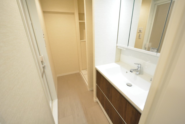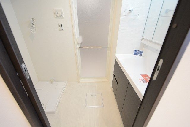 洗面化粧台、洗濯機置場、バスルームがまとまっています。