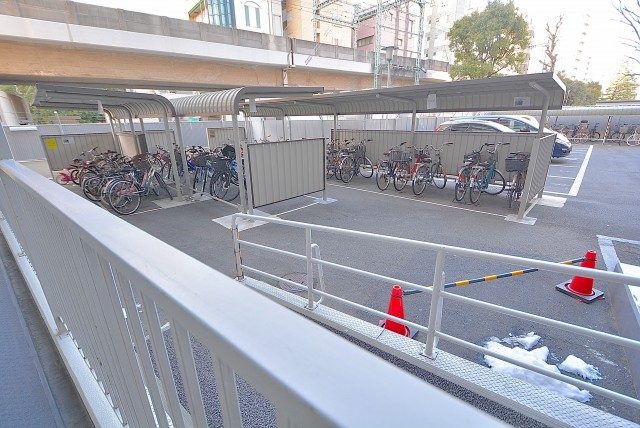 マンションの裏手には自転車置場・駐車場があります。