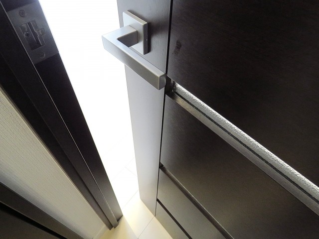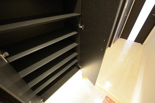 人感センサーが自動的にライトを点けてくれるので、暗い中手探りでスイッチを探さなくても大丈夫。荷物が多い時などには嬉しい機能ですよね。ドアにはダブルロックで安心も2倍!