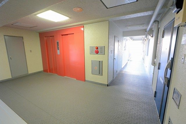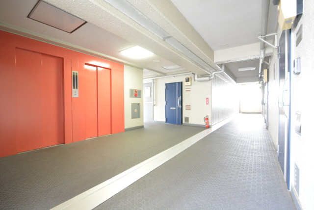 エレベーターを10階で降り、外廊下をお部屋へ向かいます。さすが大規模マンション、エレベーターホールも広いですね。