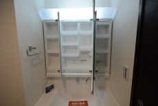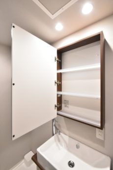 ミラーの裏がキャビネットになっているので、洗面廻りの細々した物もすっきり収納可能です。これが無いとかなり不便。