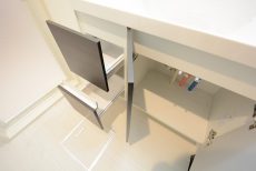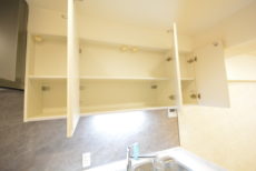 吊戸棚もあるので、トイレットペーパー等の消耗品や掃除グッズなどはこちらに入れておきましょう!