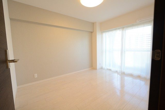 1枚扉の方の洋室は約6.1帖。南向きのバルコニーに面した明るいお部屋です。