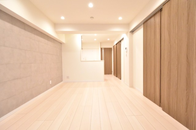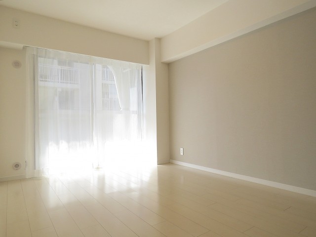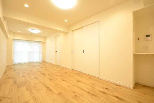 こちらは約12.3帖のリビング・ダイニング・キッチン。南向きのバルコニーに面したお部屋です。縦長でレイアウトのしやすいタイプですね。なんだかんだ言ってもオーソドックスが一番だったりします♪