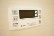 リンナイ製追い焚き機能付きのユニットバス。「自動」ボタンひとつでお風呂を沸かしてくれます。そのまま保温もしてくれるので、ご家族でお風呂の時間がバラバラになっても大丈夫♬