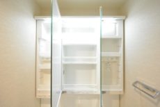 内部が収納スペースになっているので、歯ブラシや基礎化粧品などの小物はこちらに収納することが出来ますね。