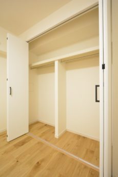 クローゼットは先程よりコンパクト。扉を開放するとキッチンからも良く見えるので、キッズルームとして使うのもありかもしれませんね。